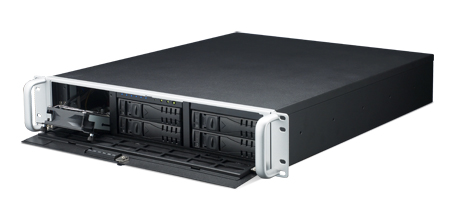2U 上架式機(jī)箱,支持ATX 母板,帶 4 SAS/SATA HDD 托架