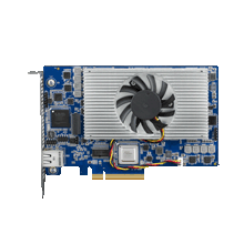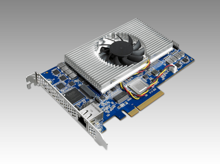 The DSP-8681 includes Serial RapidIO and SGMII daisy-chains for connecting all DSP devices. Each DSP device is also connected by two separate PCI Express lanes (PCIe x2) via the PEX8624 enabling up to 10Gbps non-blocking throughput. The card can support 120 channels in an H.264 mobile video application (CIF, 30fps) and 60 channels in a content delivery network using H.264 (SD, 30fps). For HD Broadcast applications, the DSP-8681 is capable of supporting 4 channels of AVCIntra-50, 10-bit, 4:2.0 at 60fps.